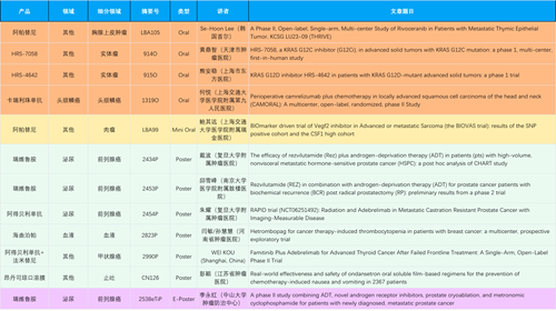 在胸腺上皮肿瘤、头颈鳞癌、肉瘤、前列腺癌、甲状腺癌等其他多个疾病领域,卡瑞利珠单抗、阿帕替尼、瑞维鲁胺、阿得贝利单抗、法米替尼、HRS-7058、HRS-4642等抗肿瘤创新药相关研究一共入选了4项口头报告、1项简短口头报告、4项壁报、1项电子壁报,彰显了PG医药强大的研发实力。此外,海曲泊帕和昂丹司琼口溶膜分别在防治化疗导致的血小板减少和恶心呕吐方面各有1项研究入选壁报。